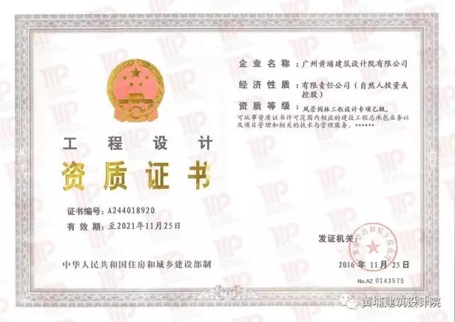 2016年11月底,黃埔建筑設(shè)計院順利通過國家住房和城鄉(xiāng)建設(shè)部審批,獲得“風(fēng)景園林工程設(shè)計專項乙級”資質(zhì)...