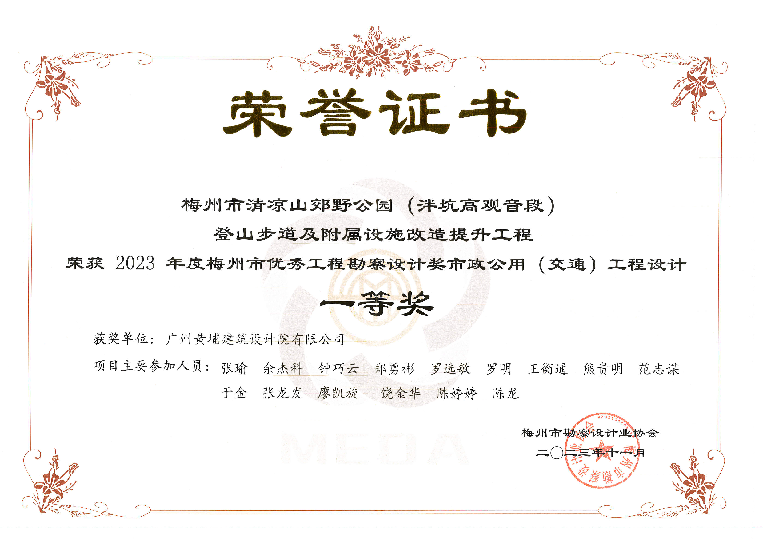 榮獲2023年度梅州市優(yōu)秀工程勘察設(shè)計獎,其中:一等獎2項、二等獎3項、三等獎9項。
