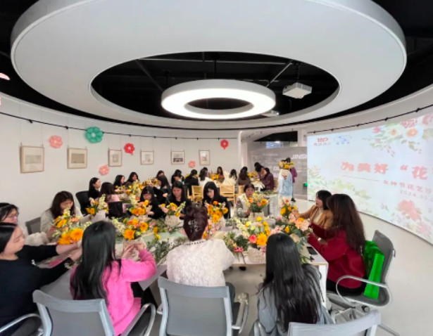 為慶祝三八國際婦女節(jié)到來,豐富女職工精神文化生活,培養(yǎng)藝術(shù)品味,3月8日當天上午,我院開展了以“為美好‘花’點時間”為主題的花藝沙龍活動。院里30余名女職工歡聚一堂,共同體驗插花的樂趣,一起品嘗美味可口的節(jié)日蛋糕,享受忙碌生活中片刻的寧靜與美好。