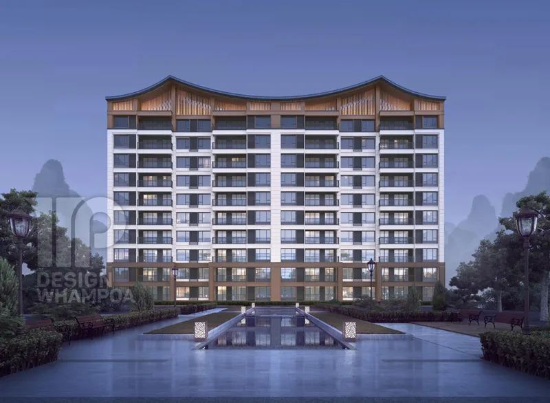 立面風格在于意境的營造,造型采用現代中式風格,在附屬用房及住宅的屋頂、采用現代中式造型,塑造簡練流暢的現代風格且富有黃姚當地風格建筑的立面。