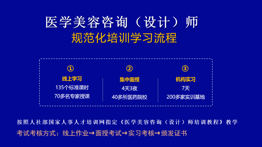 據(jù)田亞華教授介紹,參加全國(guó)醫(yī)學(xué)美容咨詢(設(shè)計(jì))職業(yè)技能規(guī)范化培訓(xùn)項(xiàng)目的學(xué)員,通過(guò)線上學(xué)習(xí)、集中面授、機(jī)構(gòu)實(shí)習(xí)等規(guī)范化培訓(xùn)學(xué)習(xí)流程,考核合格者將獲得“專業(yè)(職業(yè))技能培訓(xùn)合格證書”與“醫(yī)學(xué)美容咨詢(設(shè)計(jì))師規(guī)范化培訓(xùn)合格證書”,該證書將作為學(xué)員參加國(guó)家專業(yè)(職業(yè))技能規(guī)范化培訓(xùn)的合格證明,也是醫(yī)學(xué)美容咨詢(設(shè)計(jì))師職業(yè)技能等級(jí)認(rèn)定的依據(jù)。