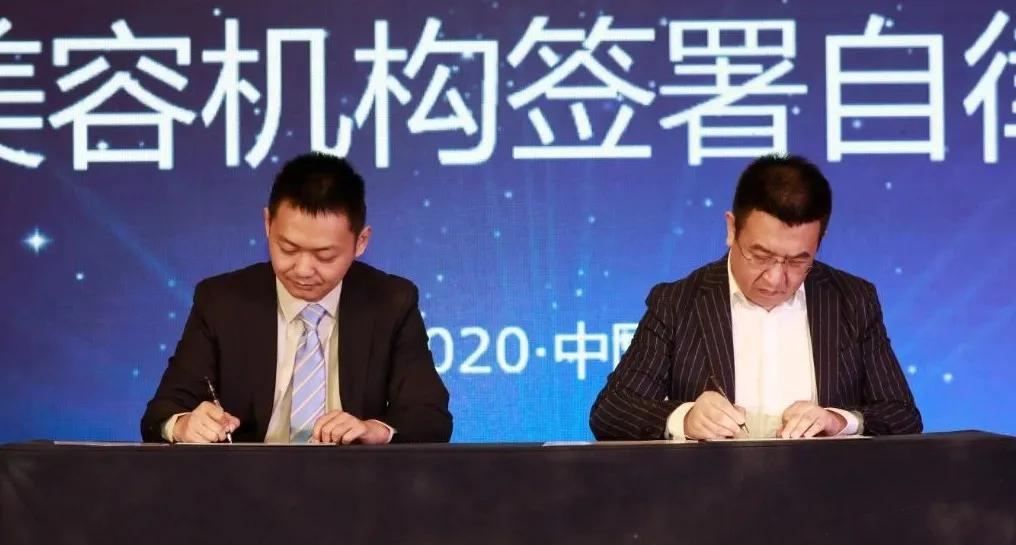 行業(yè)代表們簽署了“醫(yī)美行業(yè)自律聯(lián)盟在行動”自律承諾書,并帶領(lǐng)在場的百余家醫(yī)療美容機構(gòu)宣讀自律承諾書。