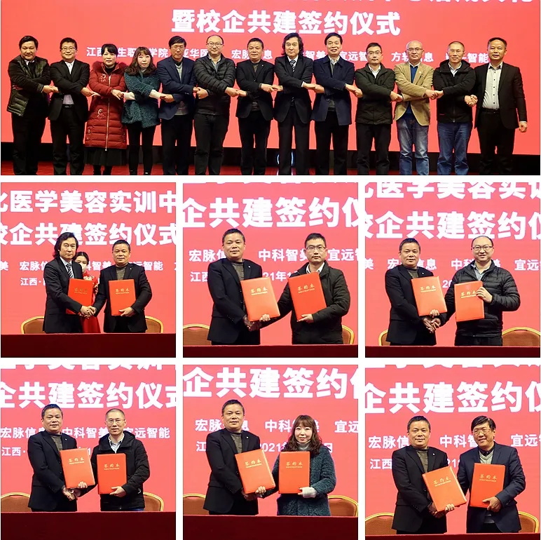 會(huì)上還舉行了簽約儀式,江西衛(wèi)生職業(yè)學(xué)院與亞華醫(yī)美、宏脈信息、宜遠(yuǎn)智能、方軟信息、中科智美、影子智能等多家企業(yè)聯(lián)合共建數(shù)字化醫(yī)學(xué)美容實(shí)訓(xùn)中心,并為校企共建實(shí)訓(xùn)室授牌。多位數(shù)字化專家被江西衛(wèi)生職業(yè)學(xué)院聘為實(shí)訓(xùn)室授課專家。