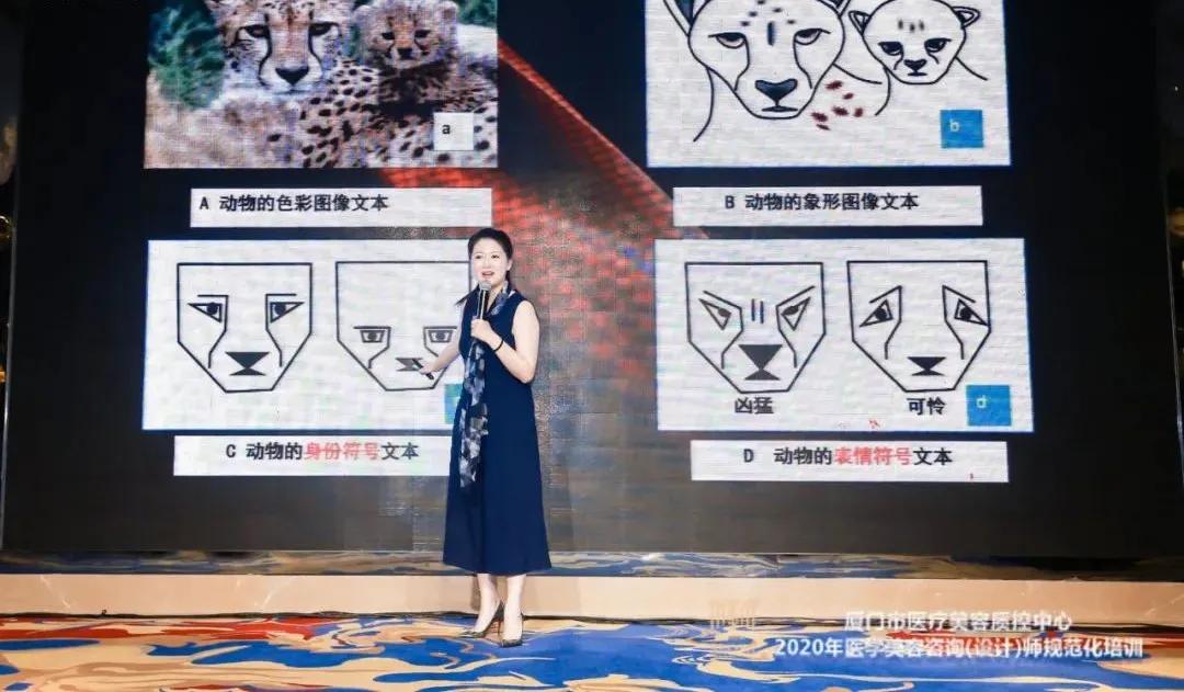 于江教授向大家講解了《面部的空間關(guān)系與三箱結(jié)構(gòu)分型》和《容貌分析的四要素與面部美容設(shè)計(jì)的三級(jí)標(biāo)準(zhǔn)》