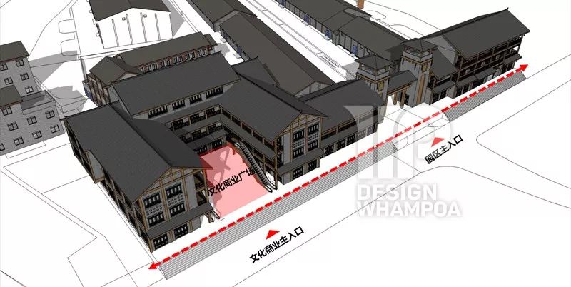 新建文化商業(yè)中心,采用仿古風格,與園區(qū)內(nèi)坡屋頂建筑風格一致。并且形成特色建筑風格,提升商業(yè)價值。